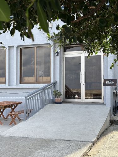 大きな緑の木漏れ日が優しく揺れるエントランスは、白い壁と木の温もりを感じる看板が目印です♪緩やかなスロープを設けた入口は、どなたでも安心してお越しいただける優しい設計となっております◎心地よい海風を感じながらガラス扉を開ければ、そこは非日常の癒やし空間。豊かな自然と共に至福の贅沢なひとときをどうぞ♪